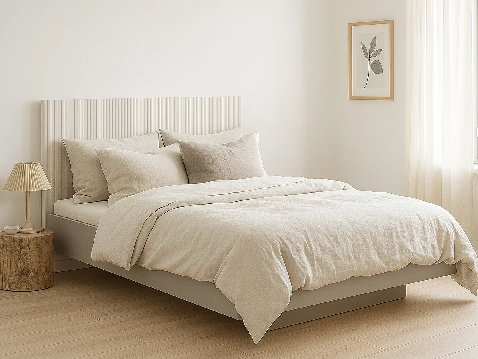Кровать будет гармонично смотреться в спальнях, оформленных в скандинавском, современном, минималистичном или эко-стиле. Сочетайте её с прикроватными тумбами в светлых или серых тонах, мягким текстилем и акцентными подушками. Для создания уюта добавьте плед, настольную лампу с деревянным основанием или декоративные корзины для хранения под кроватью. Стена за изголовьем отлично подчеркнёт себя с помощью постера или мягкой подсветки.