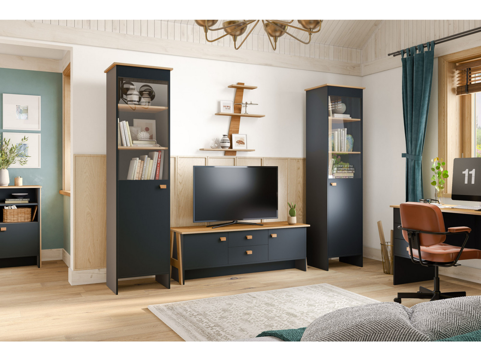 Модульная гостиная КМК Скандинавия, набор 1, Бетон пайн светлый/Дуб наварра