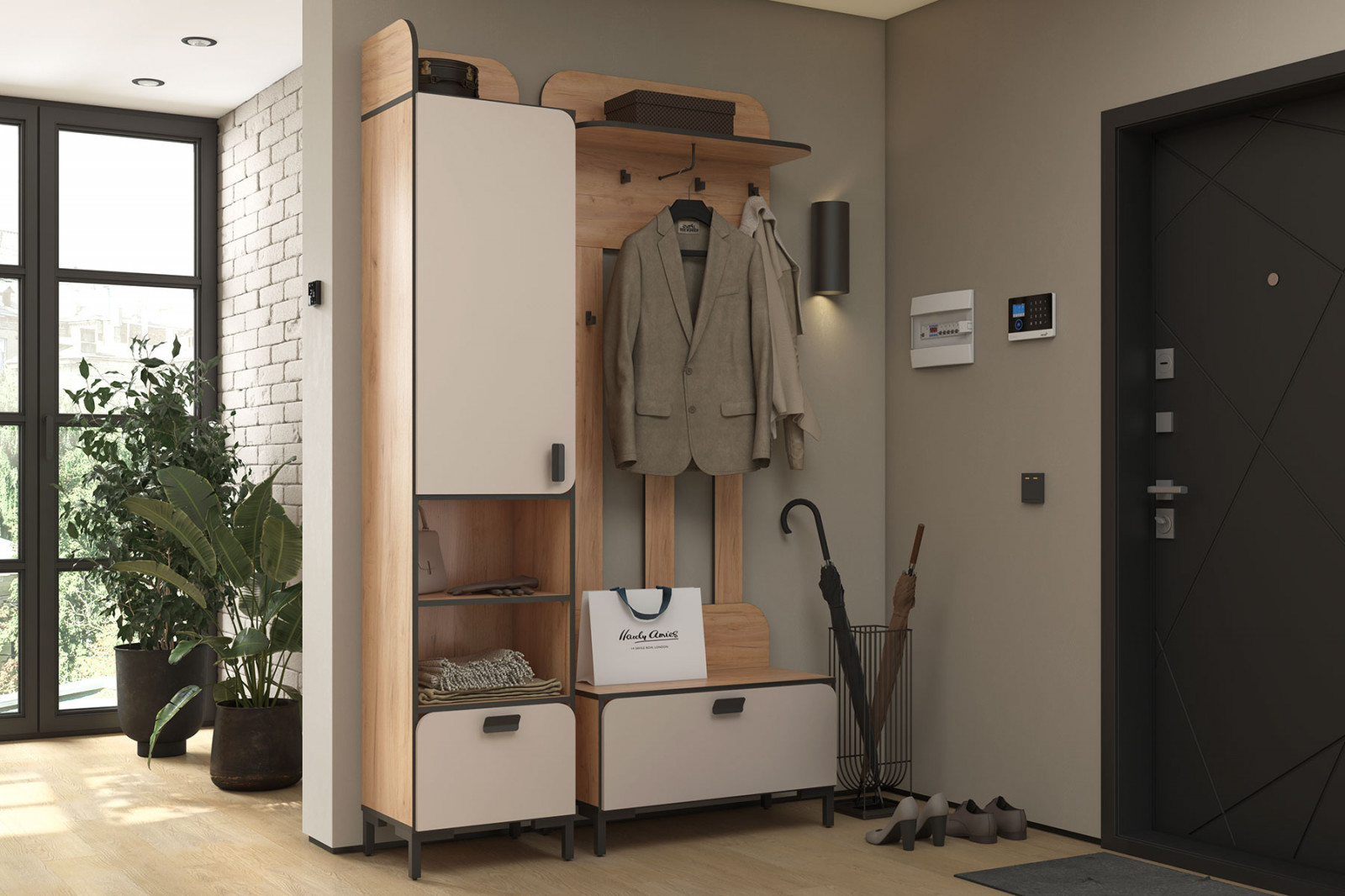 Тумба с вешалкой ТЭКС Плейона, Дуб Делано, Белый -13%