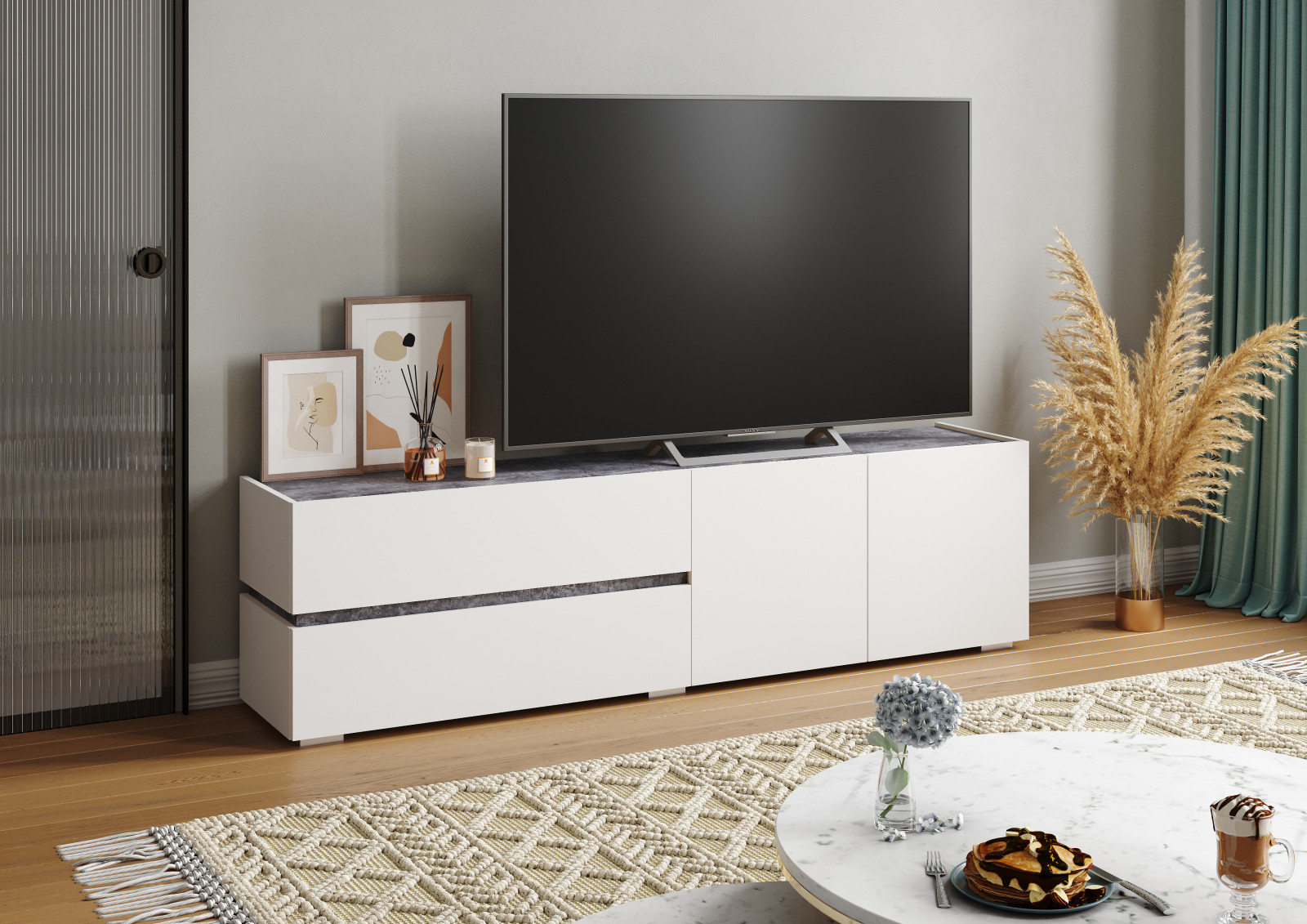 Тумба ТВ Homegrad Аркон, белый / бетон темный