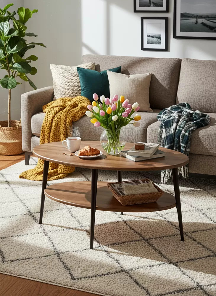 - Встроенная нижняя полка увеличивает полезное пространство для хранения: журналы, книги, пледы, корзинки или декоративные коробки всегда будут под рукой, но не создадут беспорядка на основной поверхности.